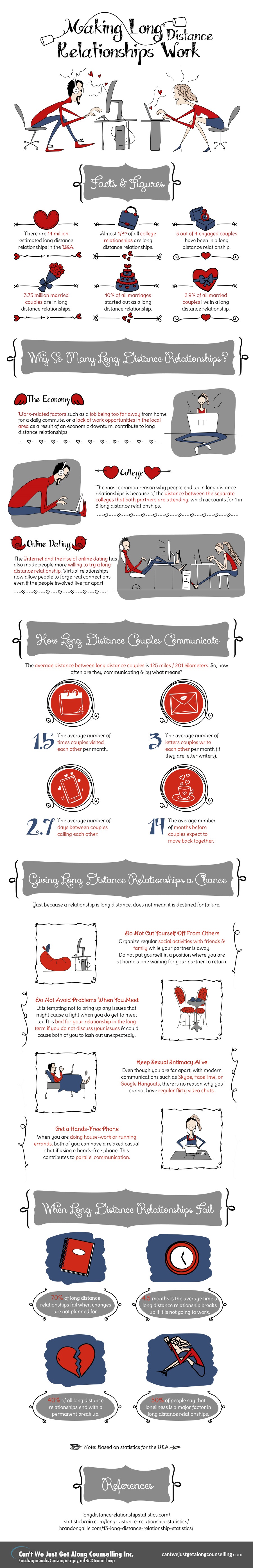 However, sustaining a long distance relationship is not easy and they are destined for failure unless one person is willing to eventually move and end the long distance aspect of the relationship. If you’re interested in more information on long distance relationships and how you can make them work, check out this infographic: